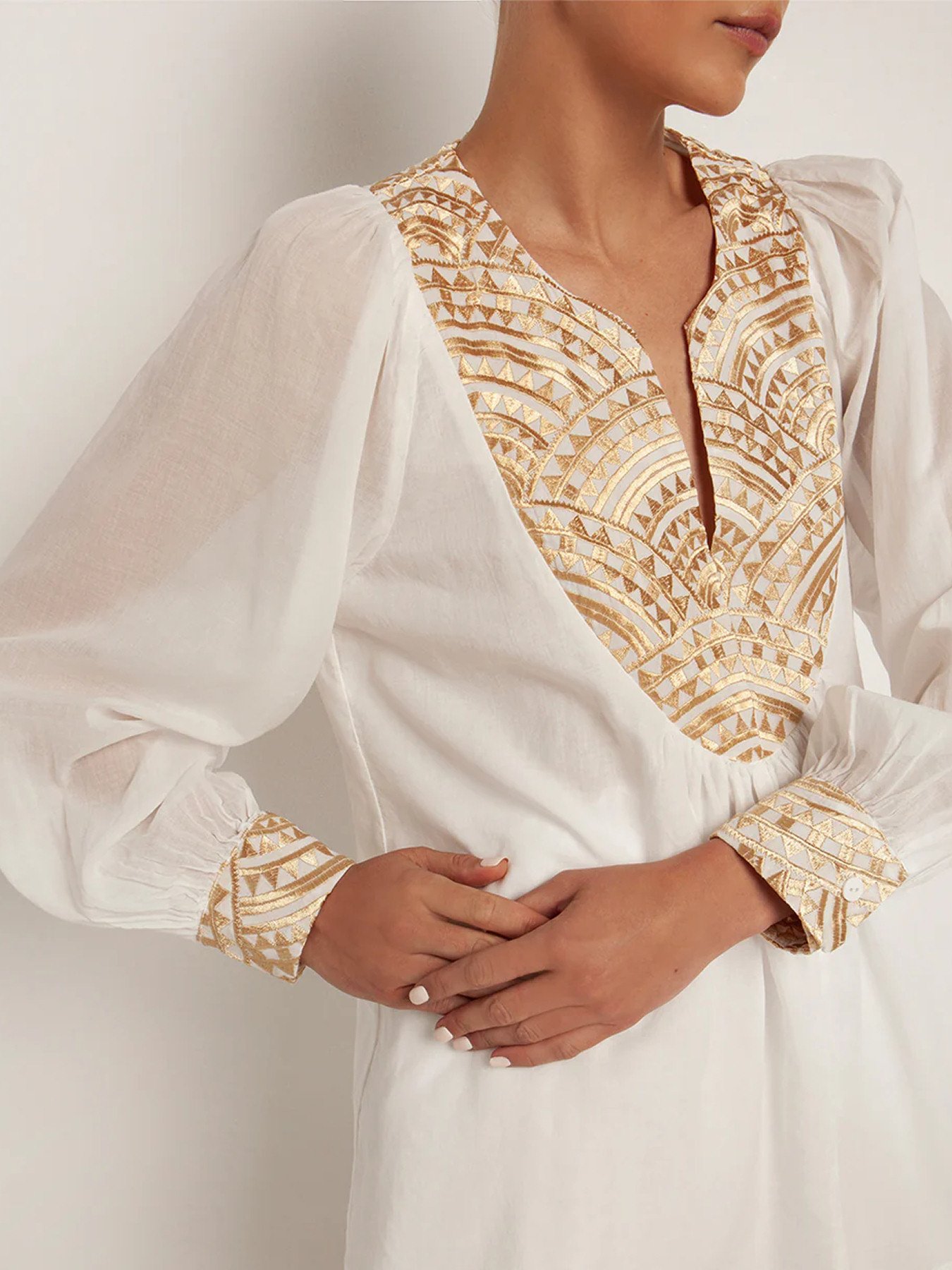 V-neckline with gold embroidery