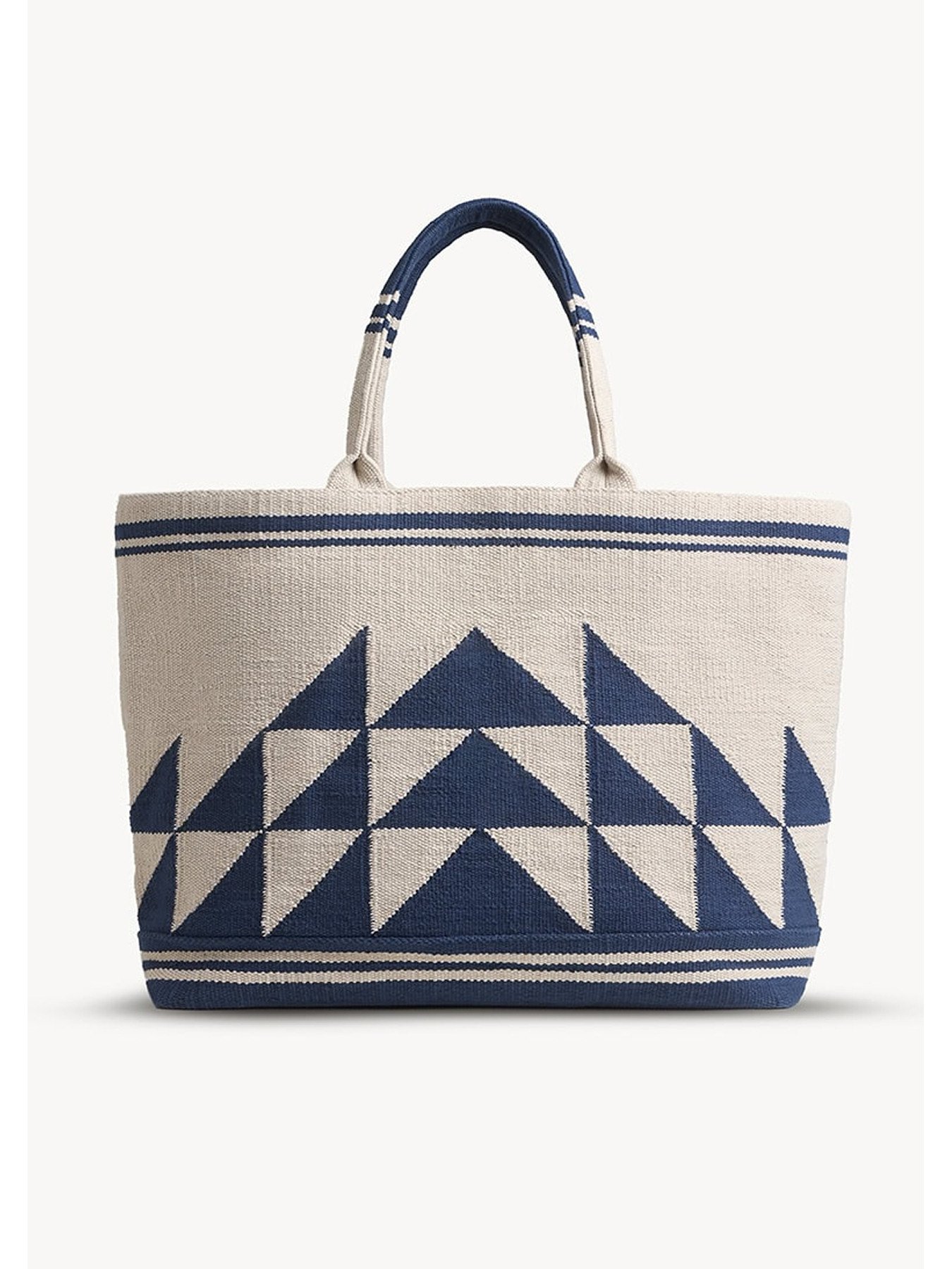 The exclusive in-house print, showcasing a black and white triangle motif, adds a touch of sophistication to your summer style. The wide opening ensures easy access to the bag’s interiors, while the magnetic clasp closure and zipper-locked inner flap pocket provides secure storage for your most precious items. With large, comfortable handles, this bag effortlessly hangs off your shoulder, combining practicality with a fashionable edge. Easy to fold and flat pack, the Beausoleil tote bag is a convenient choice for those on the go.