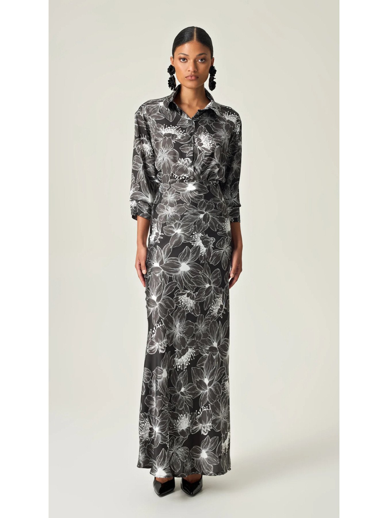 - Μοτίβο: Εντυπωσιακά λευκά λουλούδια πάνω σε μαύρο φόντο, προσδίδοντας φινέτσα και κλασικό στυλ.