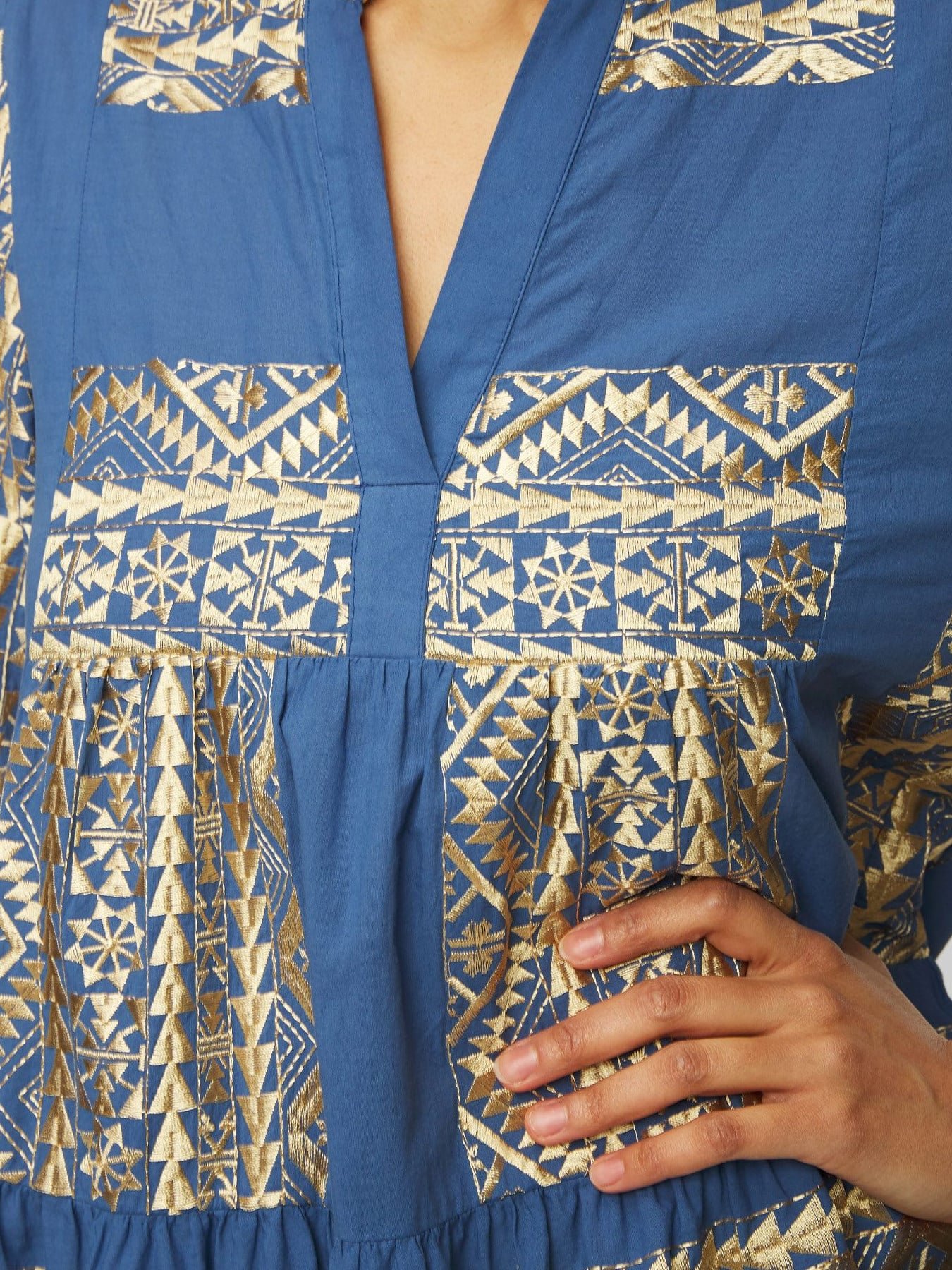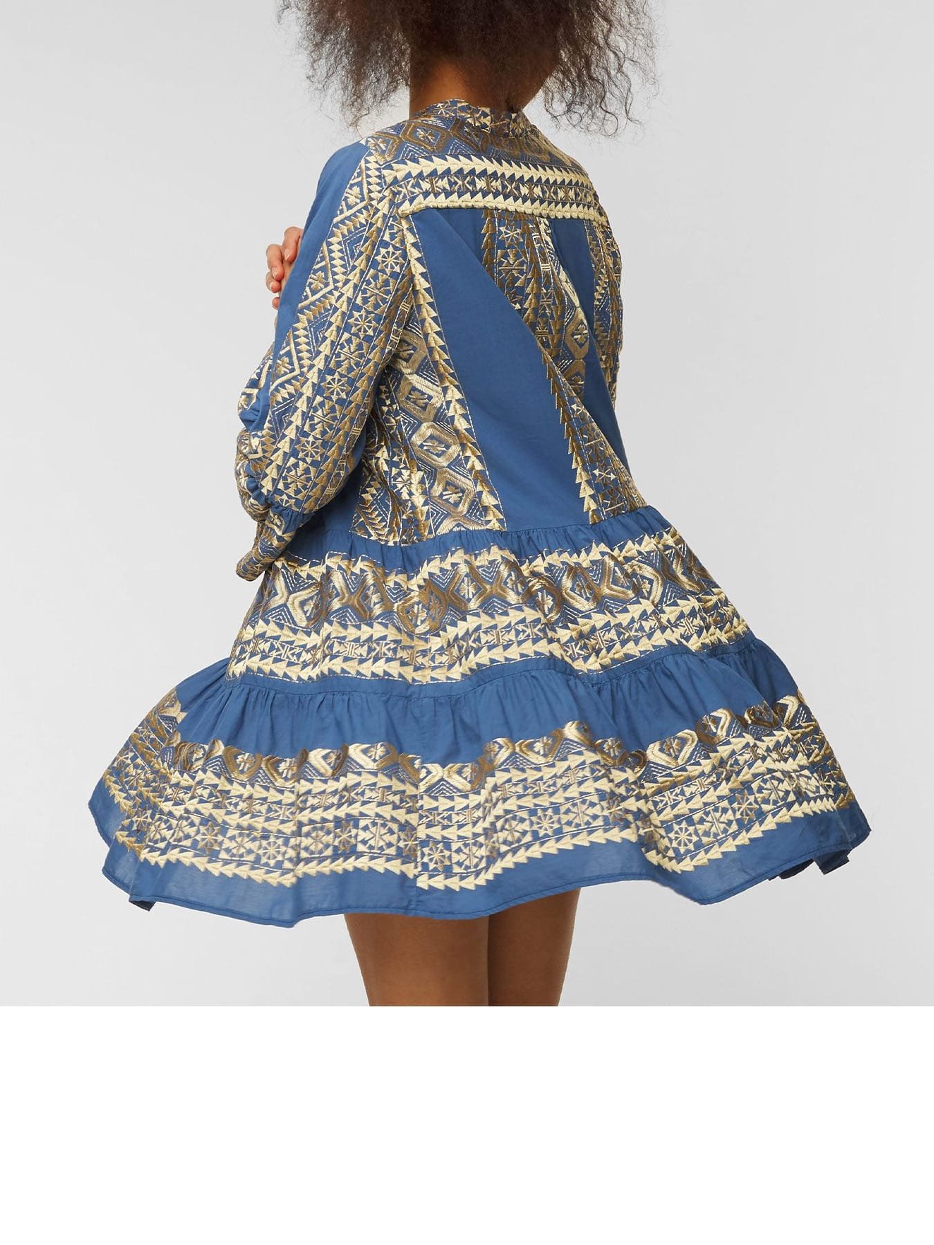 GREEK ARCHAIC KORI Embroidered Boho Mini Dress Indigo/Gold