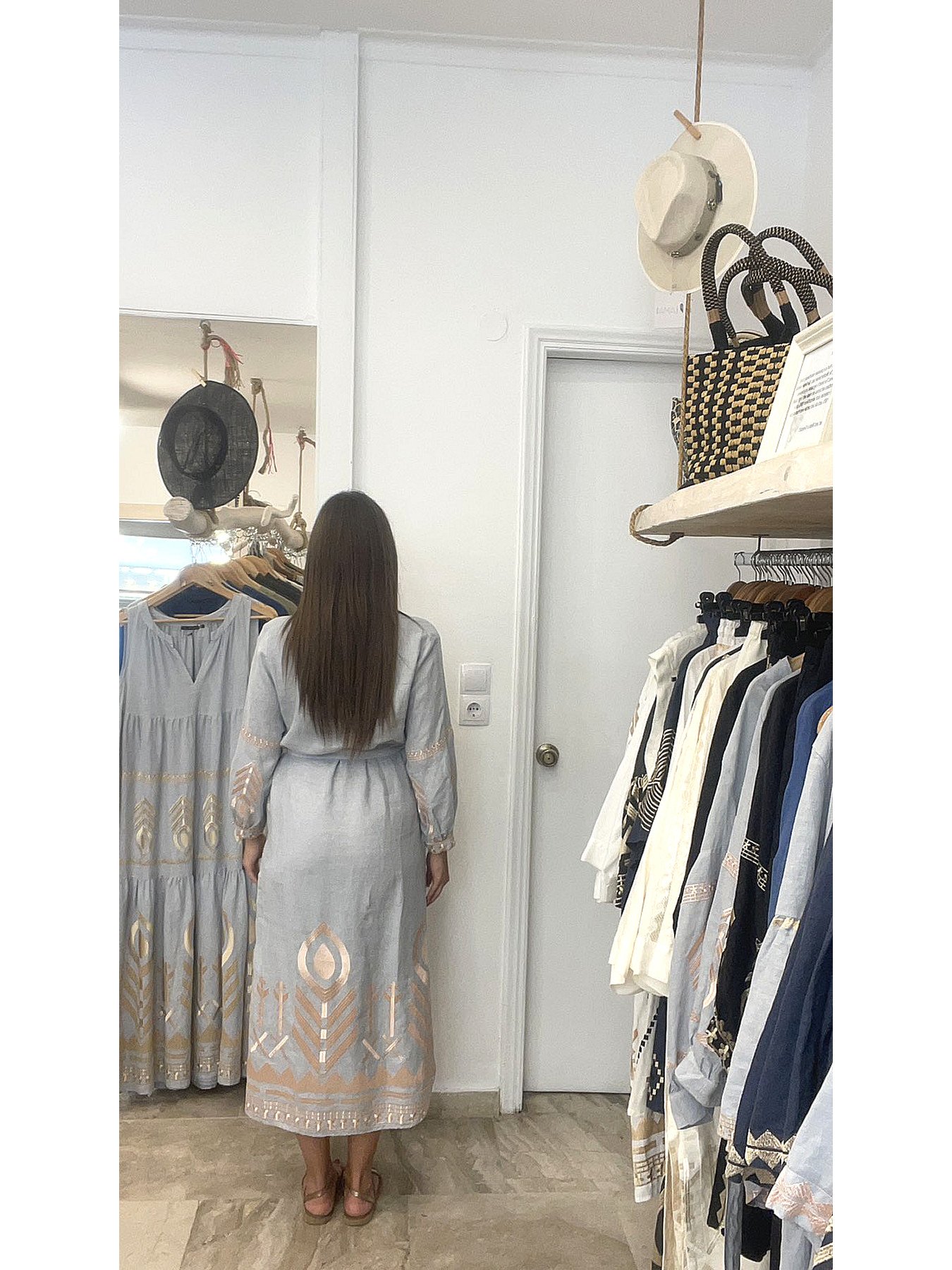 An easy linen summer dress with long sleeves, V neck and embroideries Sienne, Your best friend for the hot days of summer