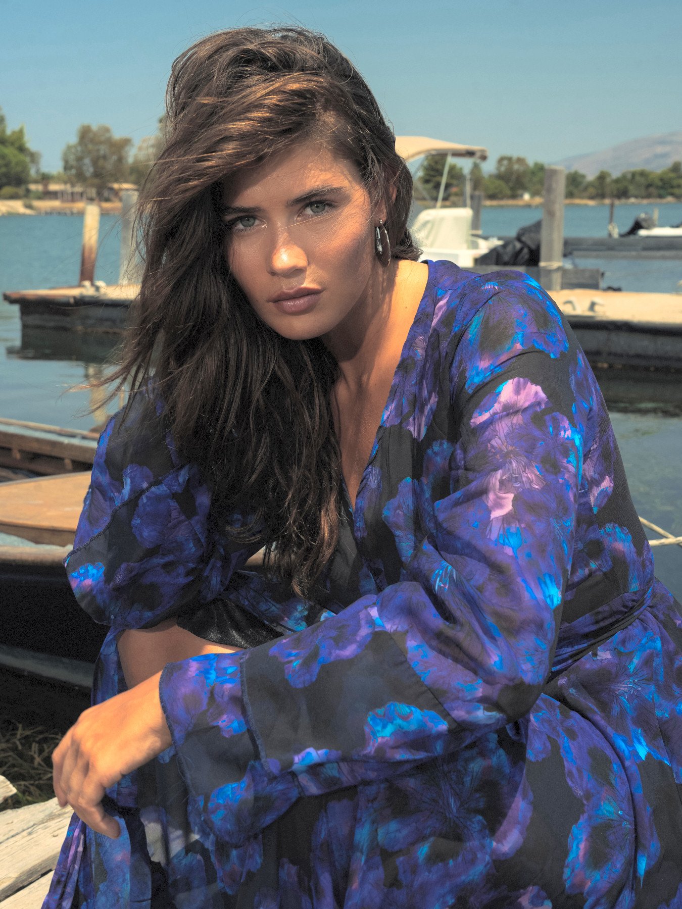 Το Azure violets maxi dress είναι ένα εντυπωσιακό μακρύ κρουαζέ φόρεμα, το οποίο διαθέτει κομψά βολάν τόσο στο μανίκι όσο και στο τελείωμα του. Επιπλέον, το φόρεμα έχει εσωτερική φόδρα στο κάτω μέρος, προσφέροντας μία αίσθηση άνεσης και ποιότητας. Αυτό το μοναδικό σχέδιο το καθιστά ιδανικό για πολλές περιστάσεις, από επίσημες εκδηλώσεις έως πιο χαλαρές εξόδους.