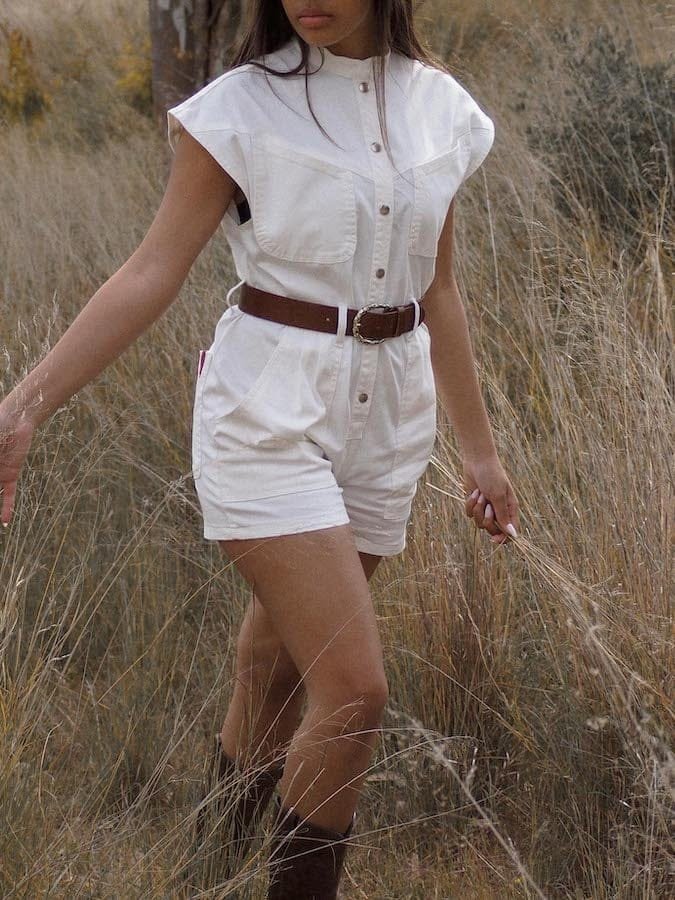 Jumpsuit made out of soft and breezy viscose. Designed with wide shoulders and a detachable belt that creates gentle structure and hour-glass shape through the relaxed silhouette. It’s easy-to-wear and versatile for all body types. It has pockets in the front, back and in chest. Wear it with strappy sandals or sneakers and enrich your styling with leather belts Crafted exclusively in Greece.