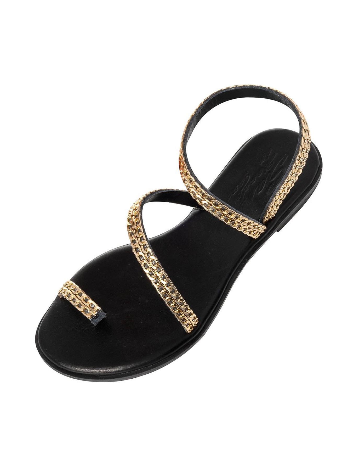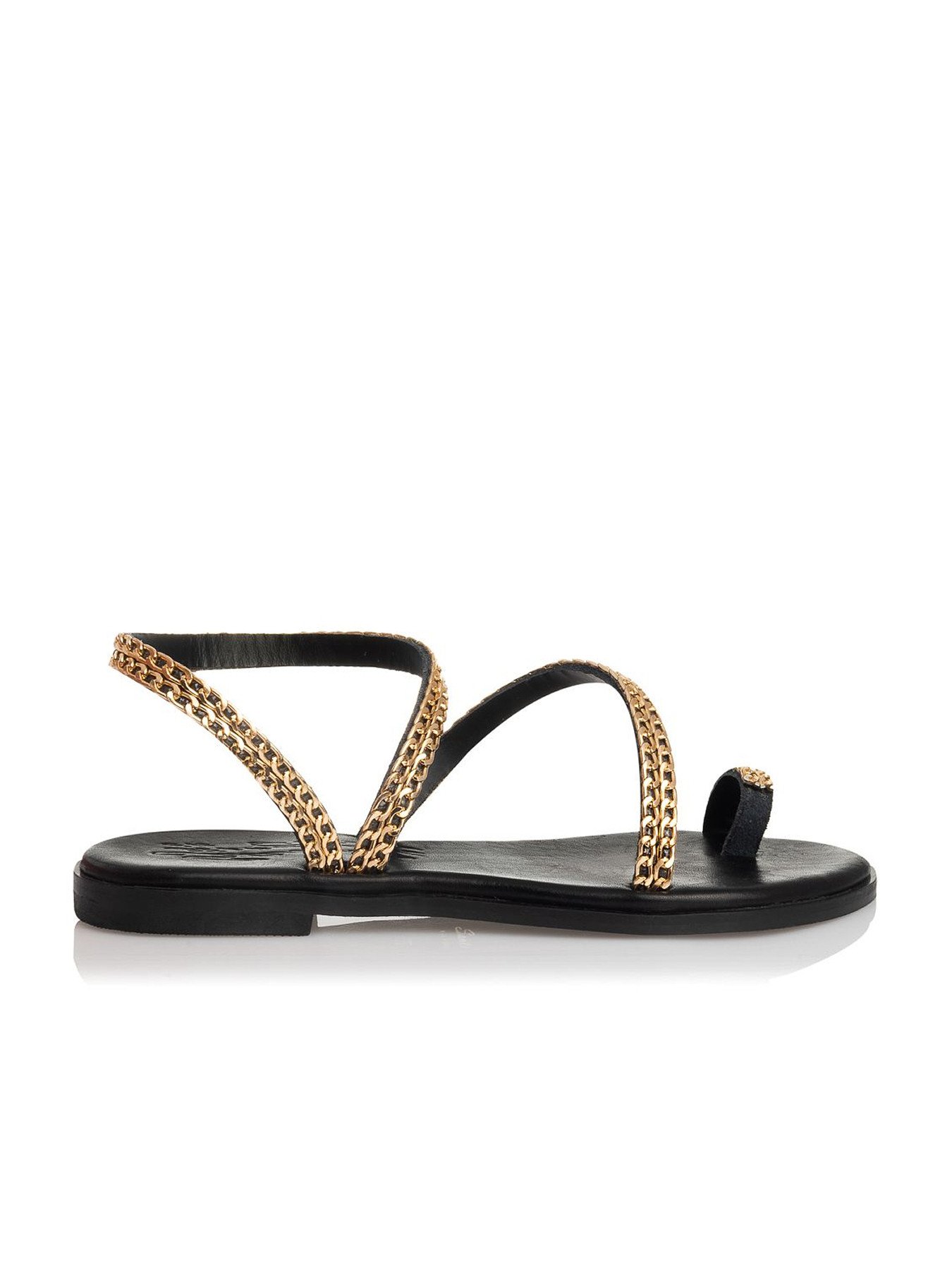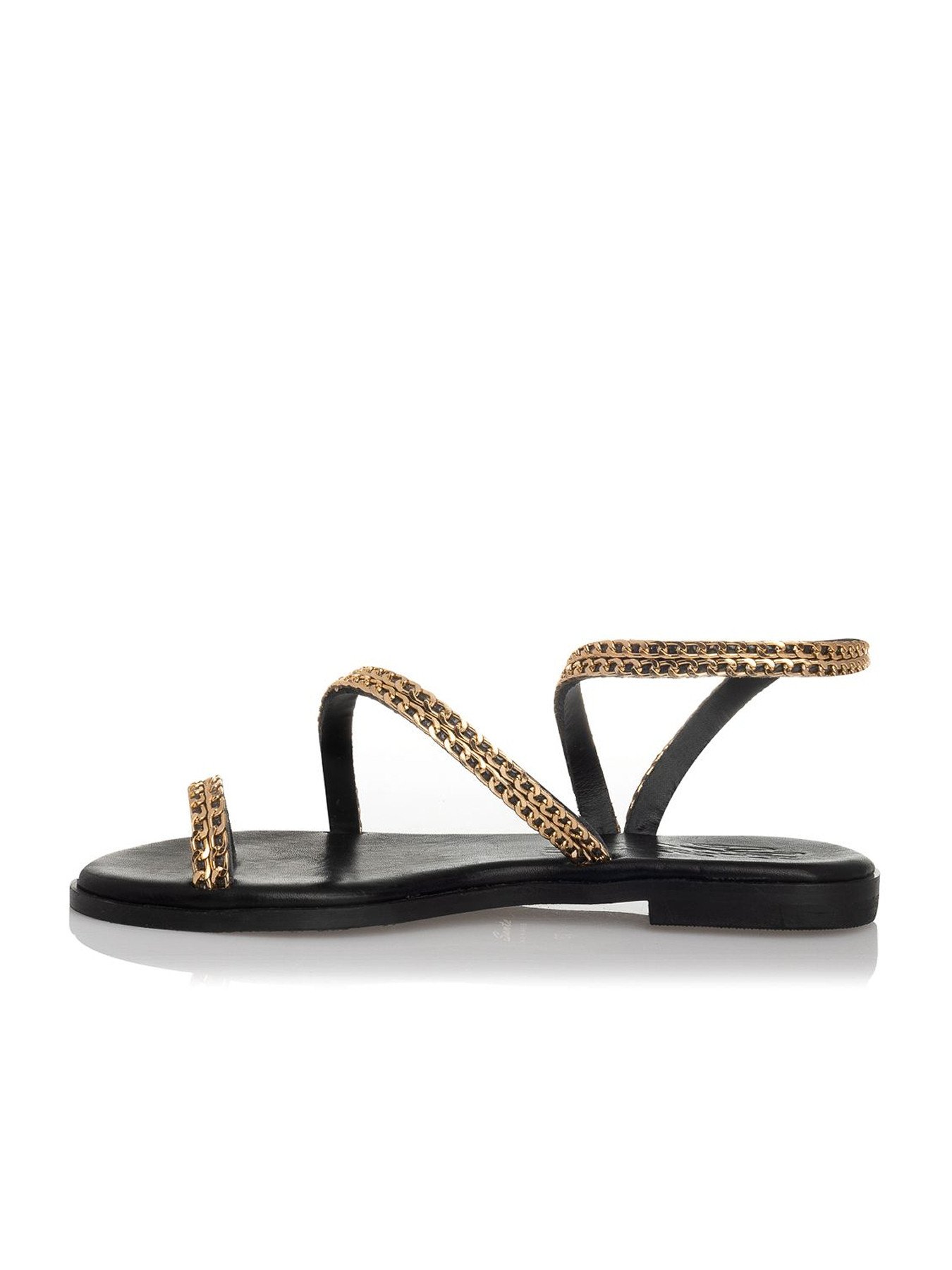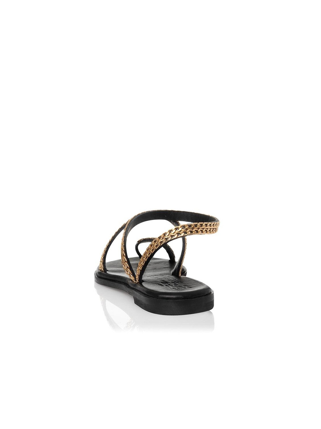 Sante flat sandals, leather with golden details. Insole leather. Color black.
