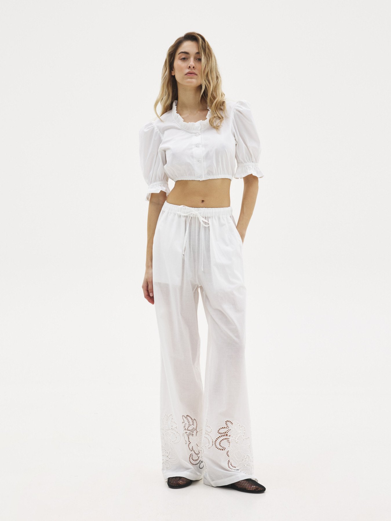 SunSetGo Lotus Crop Shirt White